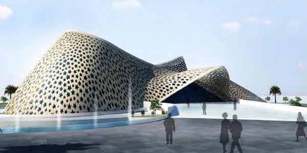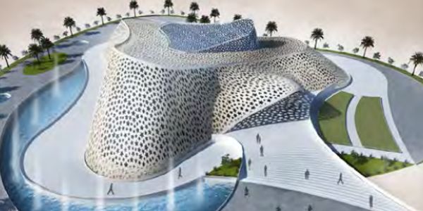 Design by Khalel Asmail while at 3G-CONTECTS Iconic Project inspired by UAE desert’s Dunes, stars that covers the building envelope reflects the challenges and the culture of UAE. the building has a total area of 20,000 Sq. M including workshops, exhibition , training , meeting, incubat